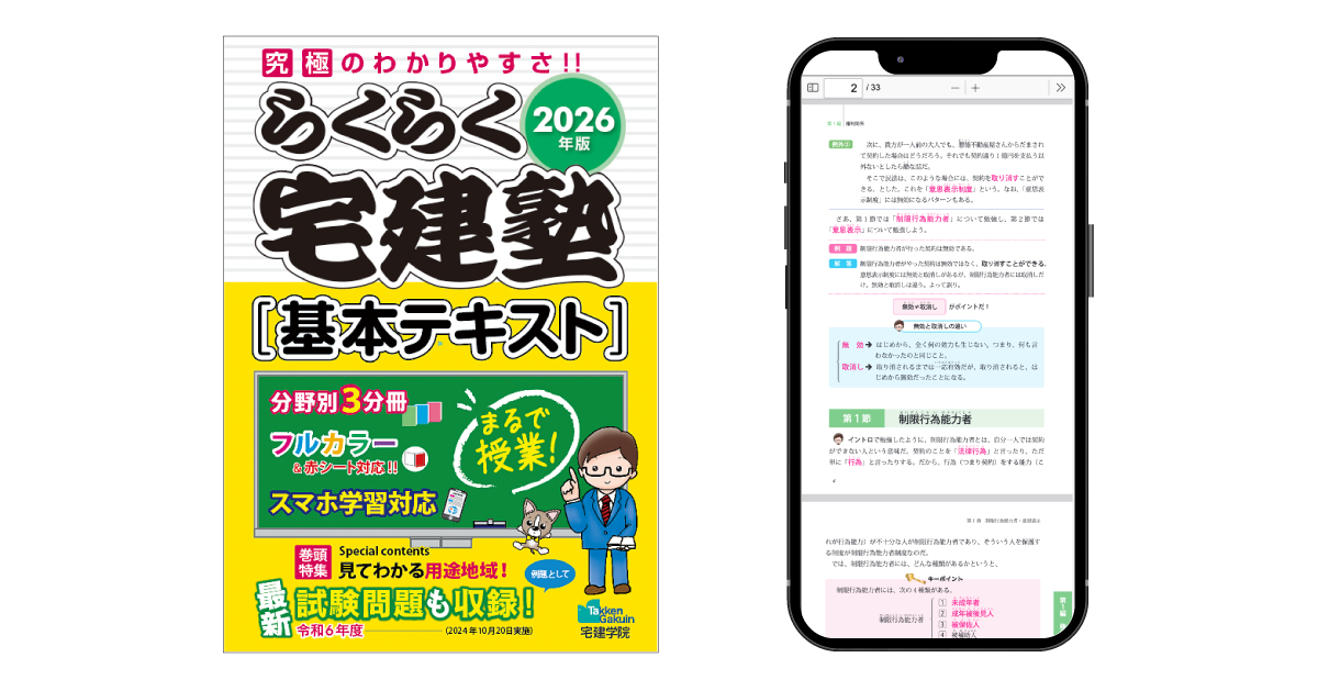 テキストとなる「らくらく宅建塾」の講義該当ページをご確認いただけます。