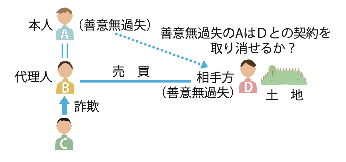 Aの代理人Bが、CにだまされてDとの間でD所有の土地について売買契約を締結したが、詐欺の事実について、ADともに善意無過失だった場合、Aは当該契約を取り消すことはできない。(H26-2-工類題)