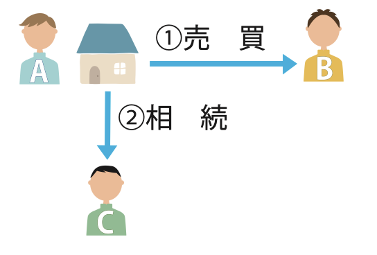 譲渡➡︎時効完成➡︎Cへの登記 ➡︎どちらも(前)パターン ➡︎Bの勝ち